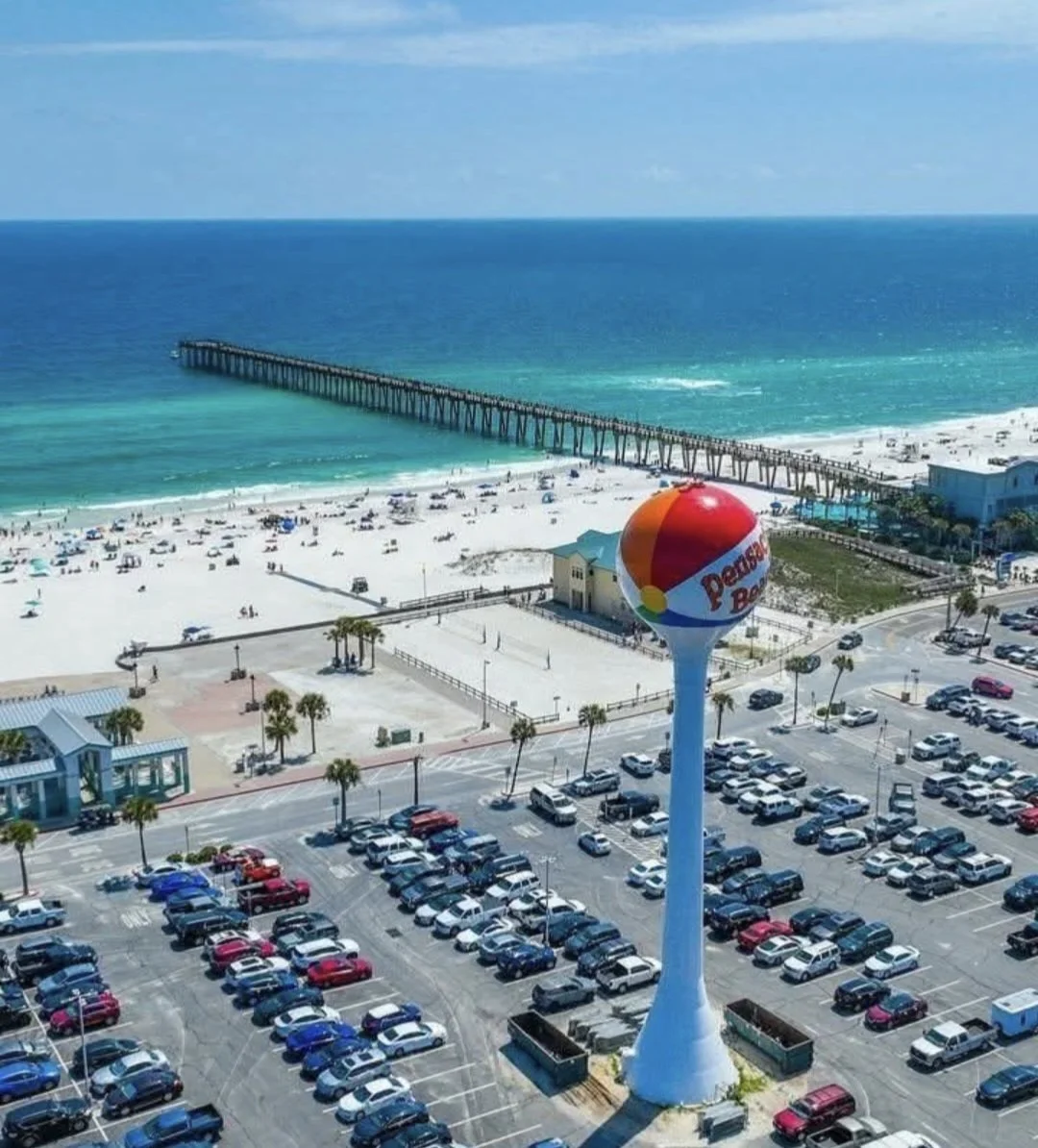 The Pensacola Beach Boardwalk is a lively waterfront spot with great food, shops, and beautiful soundside views. Just across the road, Casino Beach offers wide white-sand shores, emerald water, and the iconic beach ball water tower. Together, they create the perfect blend of fun and classic Florida beach vibes